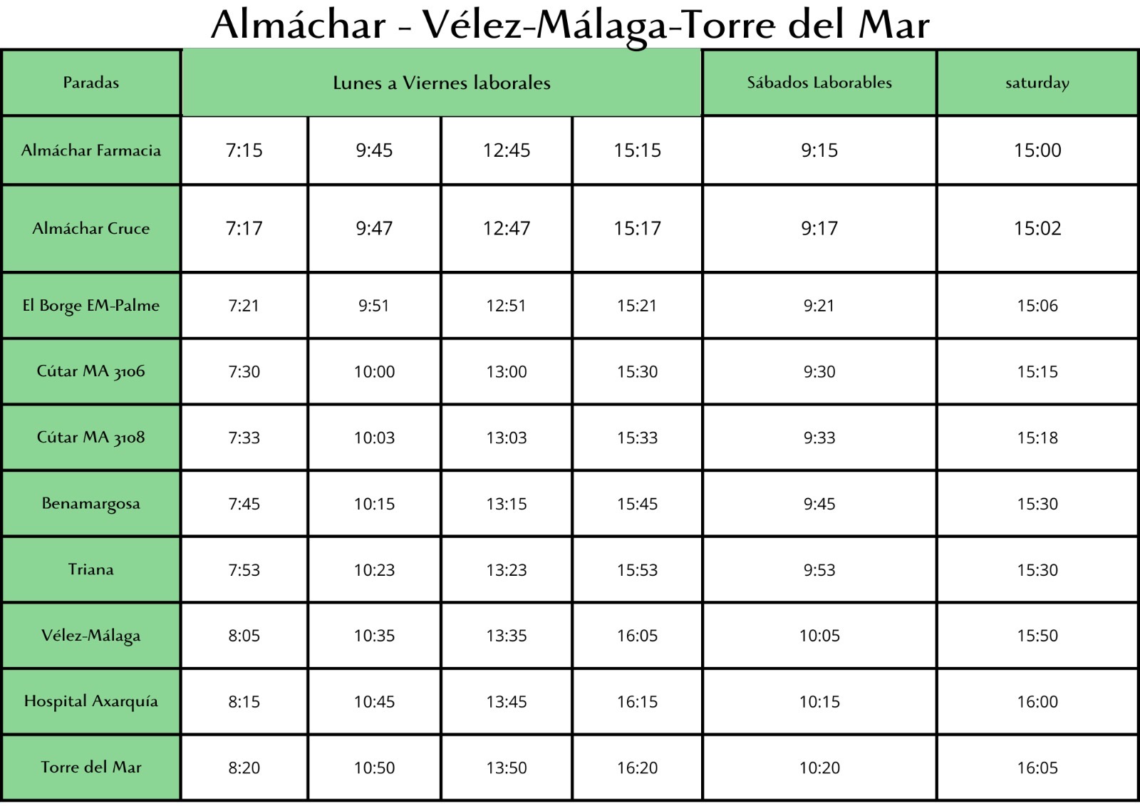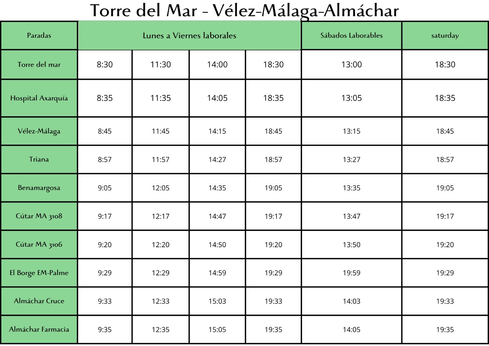 The bus from Cutar is something that has varied greatly over the years, but finally seems to have found some stability with the timetable below. If you are planning a day trip to Torre del Mar, this is the best way to do it, if the driver wants a rest and doesn’t fancy a drive down the road. Our usual combination is to catch the bus at 10 to Torre and then get the last bus back at 6.30. The tickets are bought on the bus from the driver and are around about €2.5 for a single, although the trip back is slightly more expensive for some reason. If you want to be more adventurous, you can get a bus along the coast to Malaga from Torre del Mar.